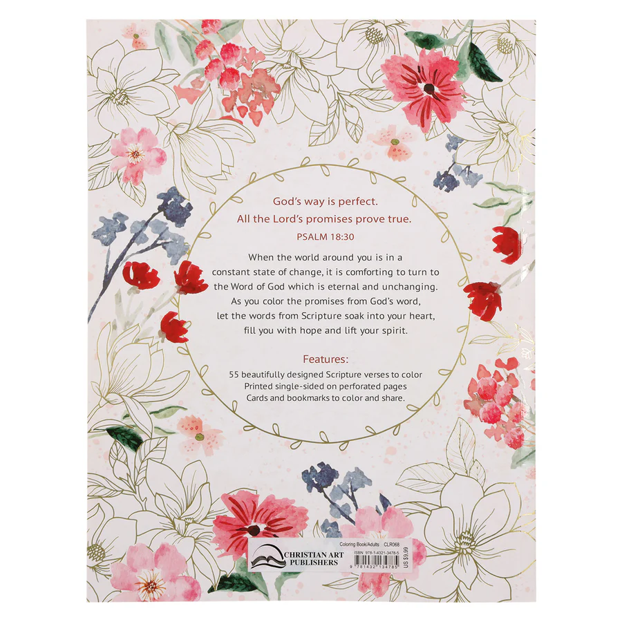Sometimes it feels hard to keep up with life’s changes and demands, and anxiety can take hold. Color the Promises of God® offers a peaceful escape through creative relaxation and spiritual encouragement. This coloring book features 55 beautifully designed illustrations inspired by promises from God’s unchanging Word, providing hope and inspiration with every page. The thick, high-quality paper ensures colors won’t bleed through whether you use pencils, gel pens, or paint. Perforated pages make it easy to remove each masterpiece for sharing or display. Also included are 8 bookmarks, 6 small and 4 large cards, and 9 decorative tags, perfect for gifting or personal use.