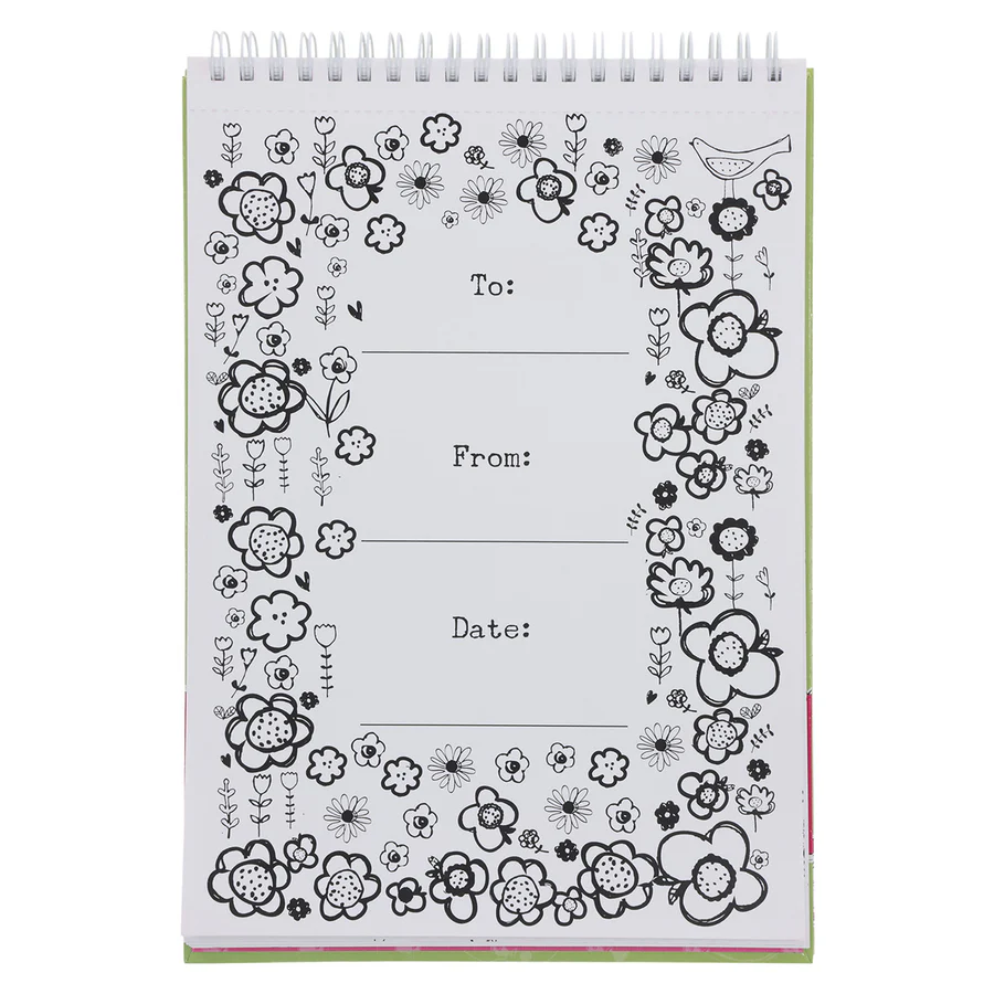 This durable coloring book is wirebound with a 5/8 inch coil at the top, perfect for coloring on the lap. It contains 104 perforated pages printed on one side, with 50 images including gift tags, bookmarks, and cards to color. Your daughter can color, cut out, and use these as notes, gift tags, or bookmarks.